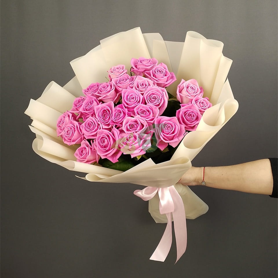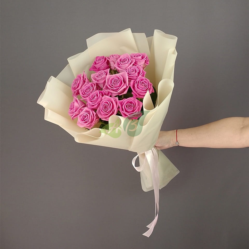 Розовые розы – удивительные цветы. Букет из благородных малиновых или нежно-лиловых роз станет уместным подарком для вашей девушки и в день её Рождения, и по случаю признания в любви. Такой букет поможет получить ее прощение после размолвки.